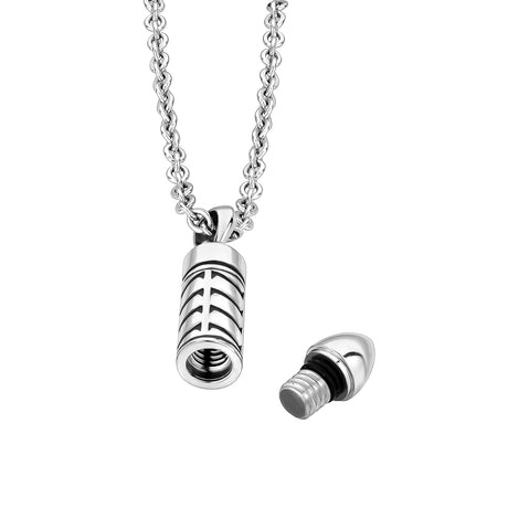 Houd hun herinnering dichtbij. Ontdek de roestvrijstalen hangers met discrete compartimenten voor as, ontworpen om dierbaren te eren met kracht en gratie.