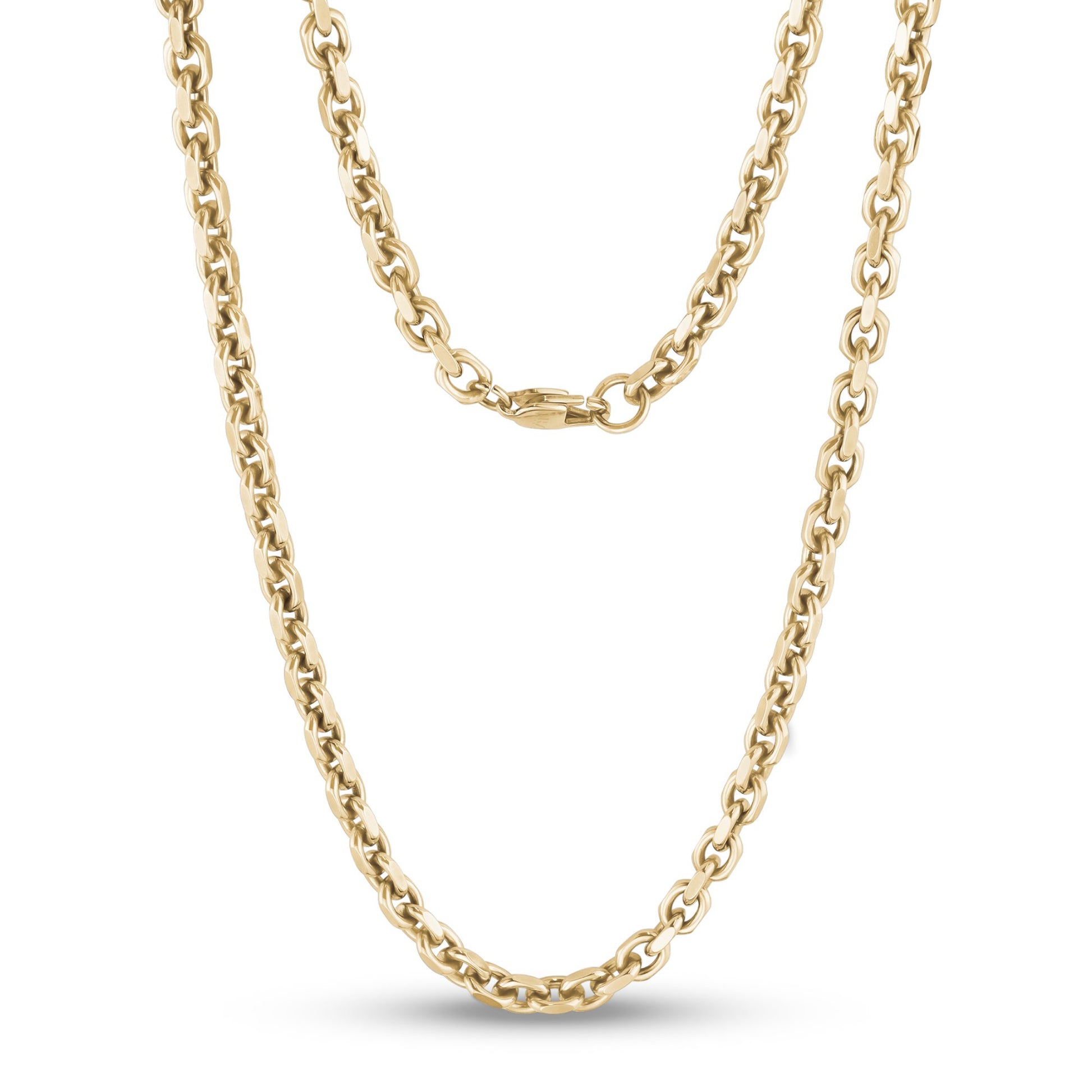 In de nautische wereld helpt een ankerketting bij het aanmeren van een boot. Maar een ankerketting kan ook een onderdeel zijn van uw sieraden. Kijk maar naar deze roestvrijstalen ketting. De diamantgeslepen schakels zijn zowel robuust als ingetogen, waardoor deze ketting zijn mannetje kan staan zonder uw ensemble te overheersen. Het eenvoudige profiel maakt dit een unisex stuk, en het kan er goed uitzien bij een breed scala aan stijlen. U kunt kiezen uit drie dynamische kleuren. De roestvrijstalen afwerking is verkrijgbaar in zilver, goud en brons.