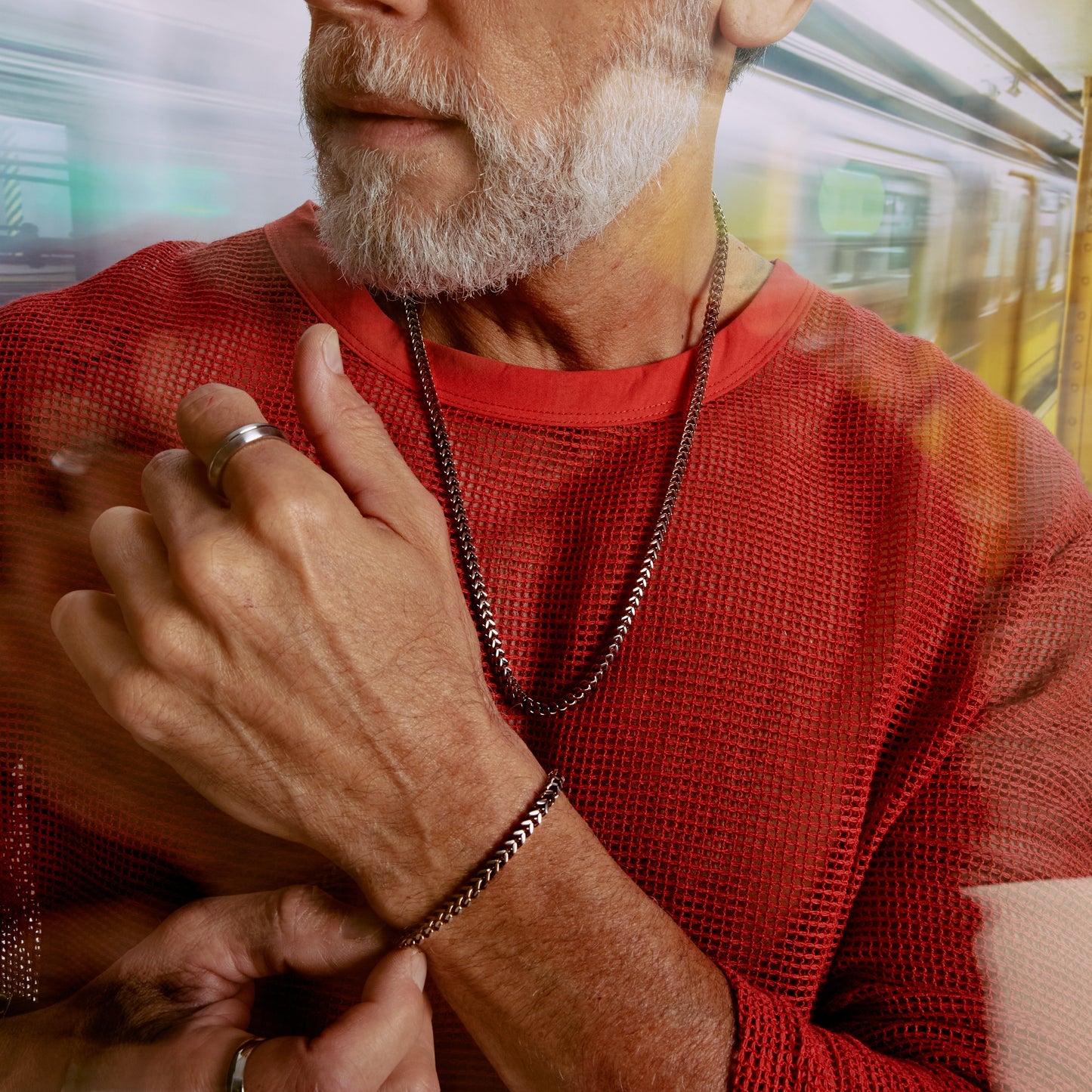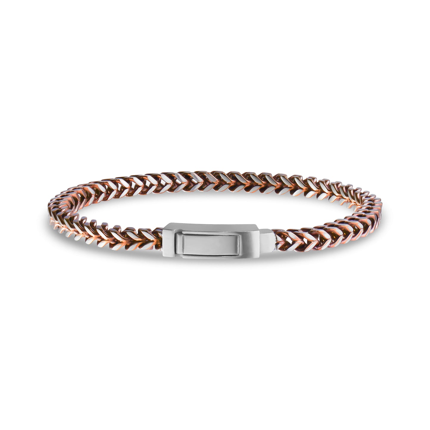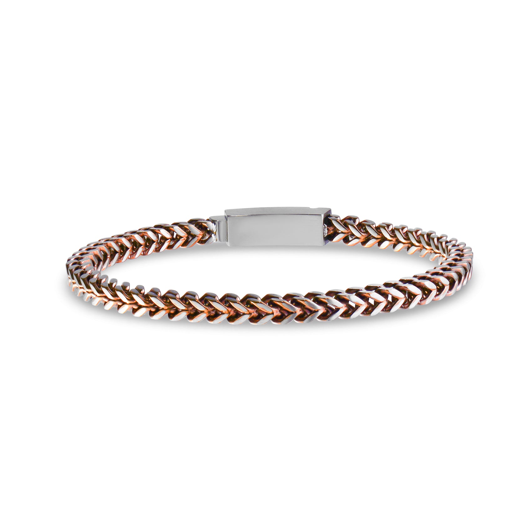 Minimalistisch met een randje. Deze 4 mm (0,16") Franco schakelarmband heeft een matte tweekleurige afwerking in diep koffiebruin, waardoor het een gedurfde maar toch verfijnde look heeft. De strak geweven schakels bieden een strakke, moderne stijl die stevig aanvoelt zonder volumineus te zijn. In combinatie met een matte roestvrijstalen sluiting die gegraveerd kan worden, is het de perfecte mix van personalisatie en draagbaarheid voor elke dag. Ingetogen, scherp en gemaakt om je pols te verbeteren.