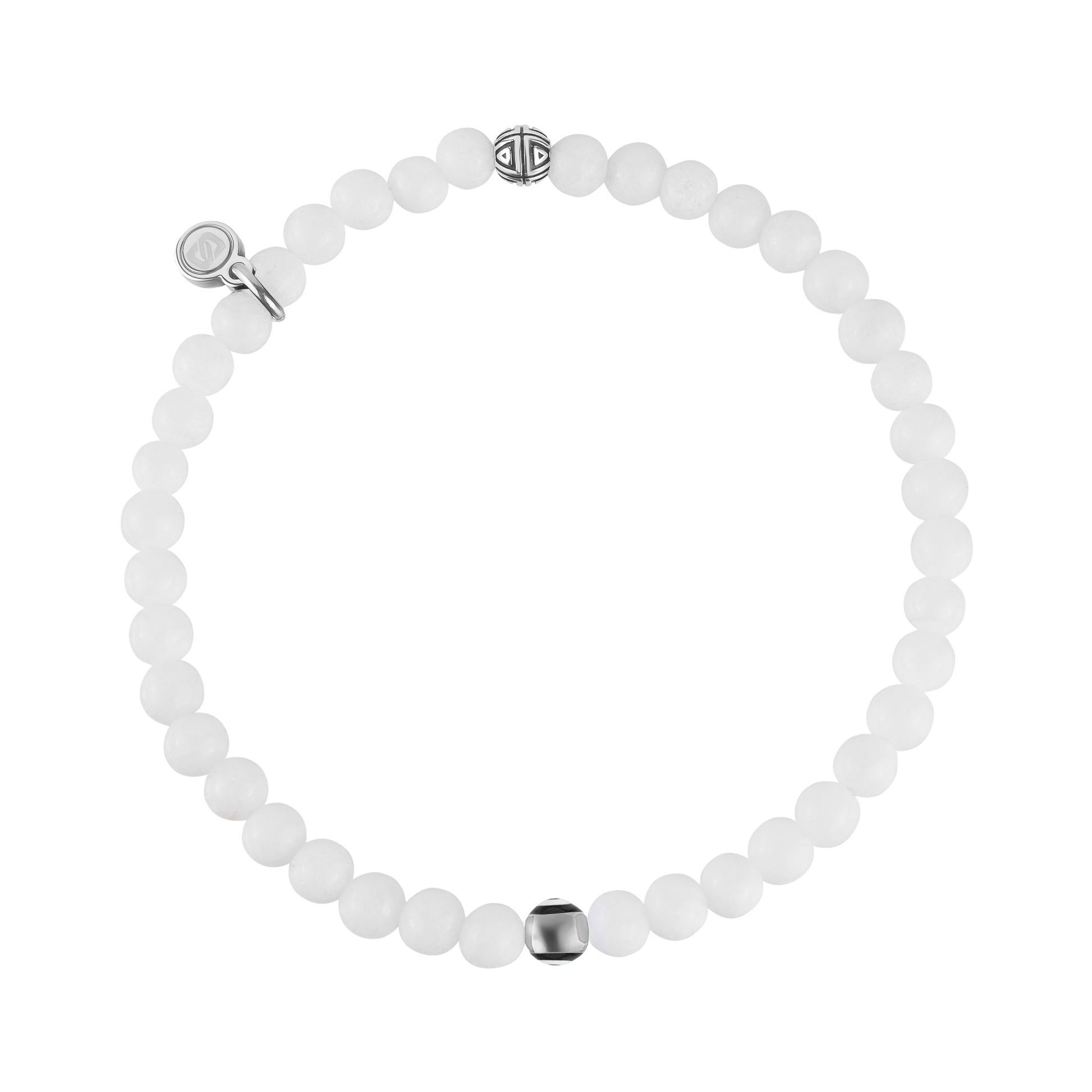 Een moderne upgrade van een tijdloos symbool. Deze armband is gemaakt van 4 mm (0,16") witte jade kralen, die bekend staan om het brengen van vrede, helderheid en positieve energie. Hij is voorzien van onze verbeterde boze oogkraal, nu verbeterd met een gepolijste roestvrijstalen omtrek voor een verfijnde, hoogwaardige afwerking. Het boze oog wordt al eeuwenlang gedragen als bescherming tegen negativiteit en voegt een krachtige betekenis toe aan een armband die stijlvol en symbolisch is en perfect om te stapelen of cadeau te geven.