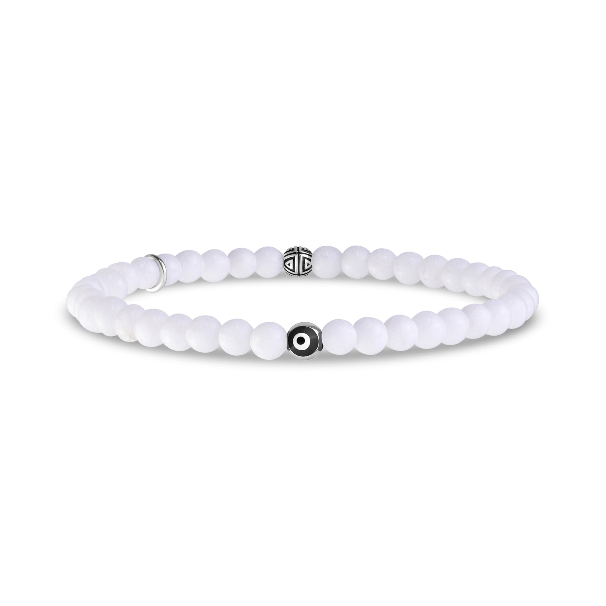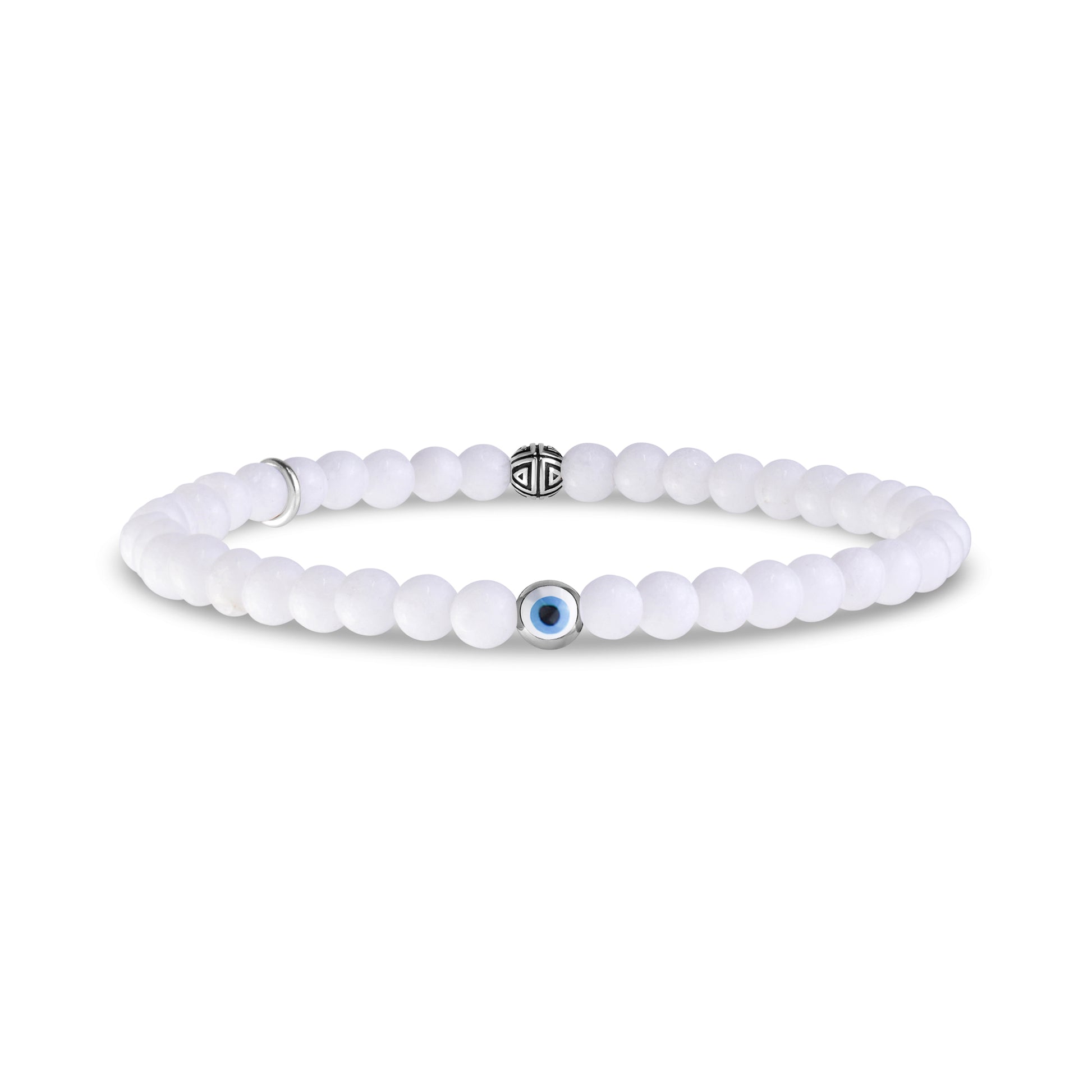 Evil Eye White Jade Protection Bead Bracelet | 4MM