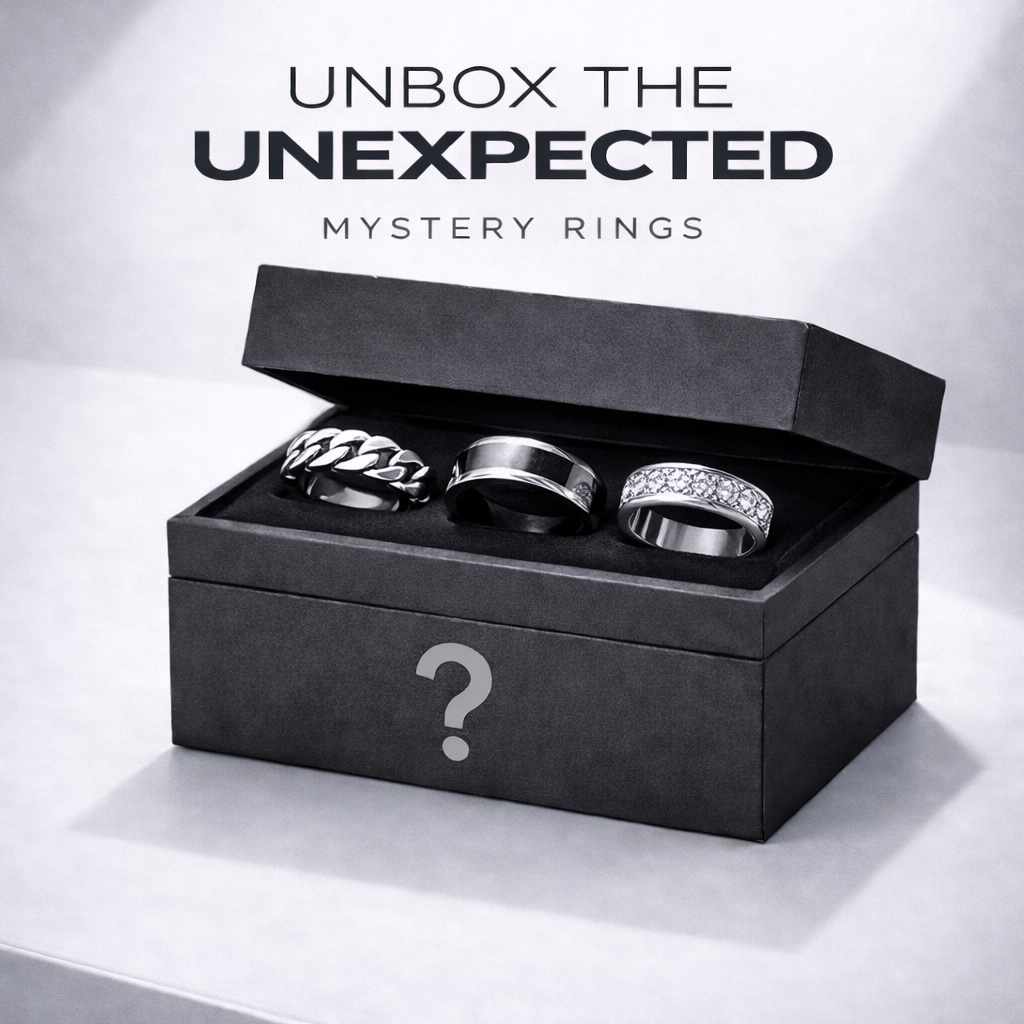 Waag een gokje met de Mystery Rings Box The Steel Shop. Daarin vind je exclusieve roestvrijstalen voorbeeldringen in verschillende afwerkingen en ontwerpen, waaronder zegelringen, minimalistische banden en opvallende statement pieces. Veel daarvan zijn nooit online verkrijgbaar geweest.